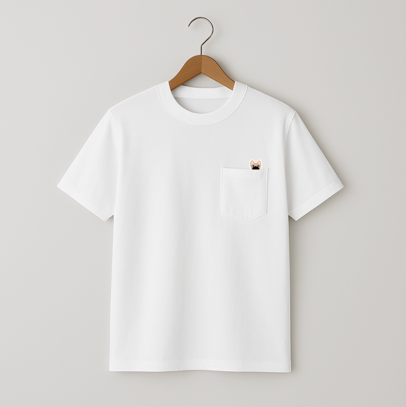 ボケットからちょこっと覗くBlogoとフレンチブルドッグ